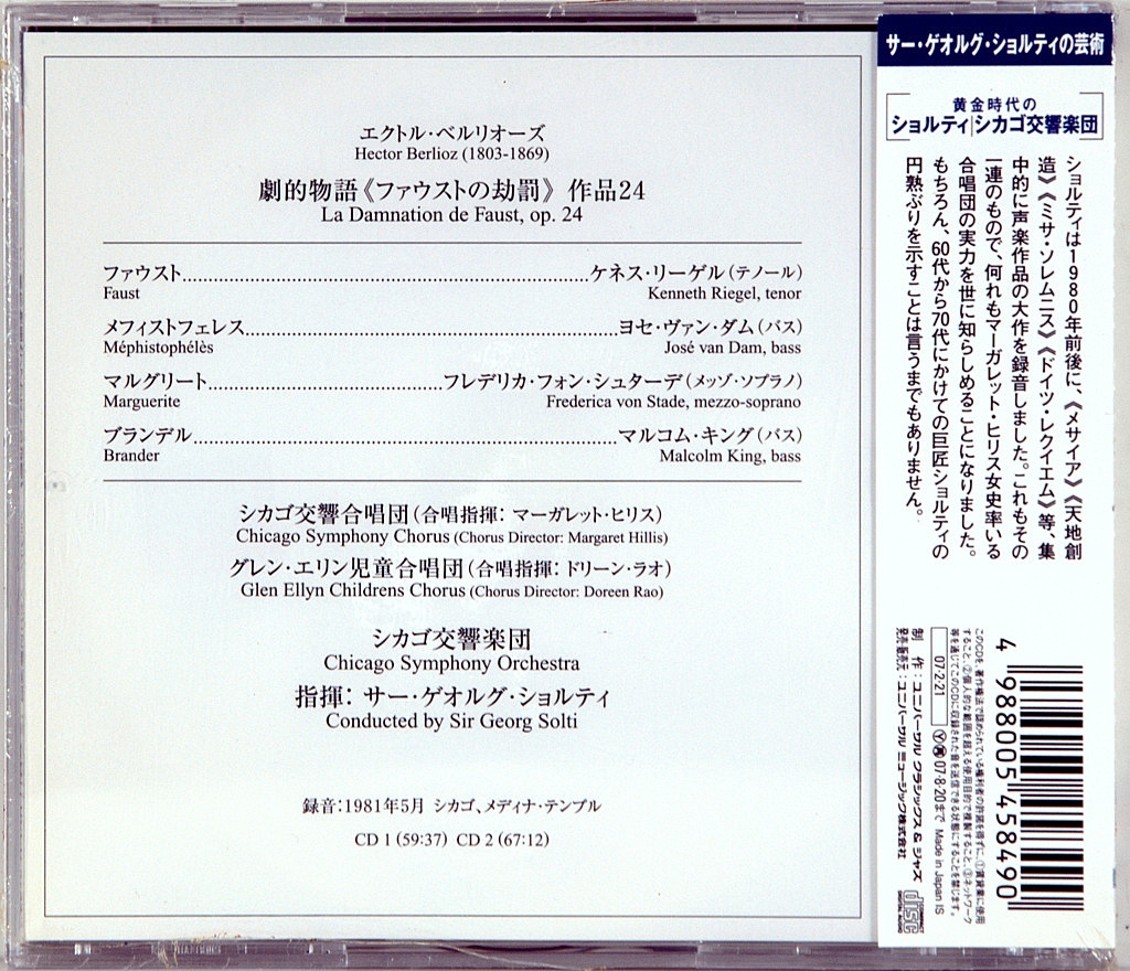 RIEGEL, KENNETH / STADE, VON FREDERICA / VAN DAM, JOSE / KING, MALCOLM / SIR GEORG SOLTICHOEURS AND ORCHESTRE SYMPHONIQUE DE CHICAGO / SOLTI, GEORGE - BERLIOZ - LA DAMNATION DE FAUST