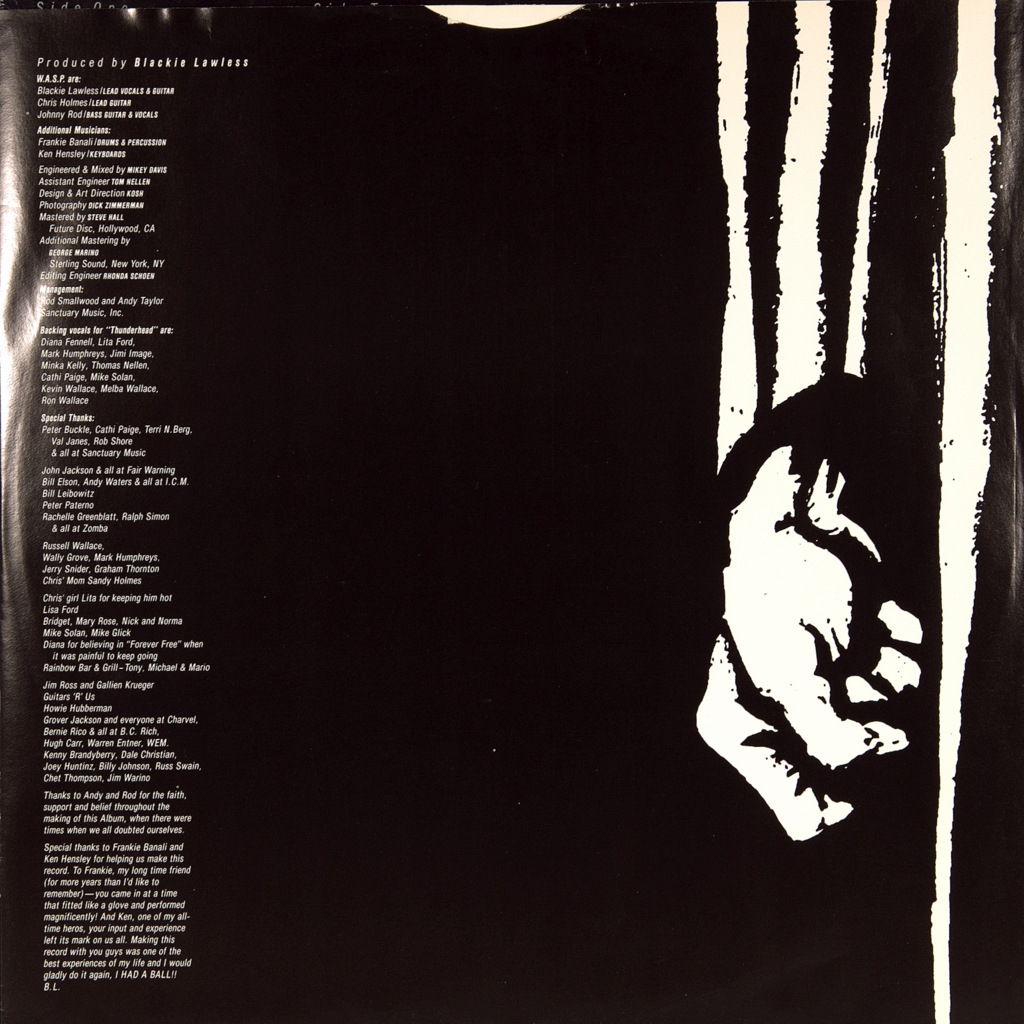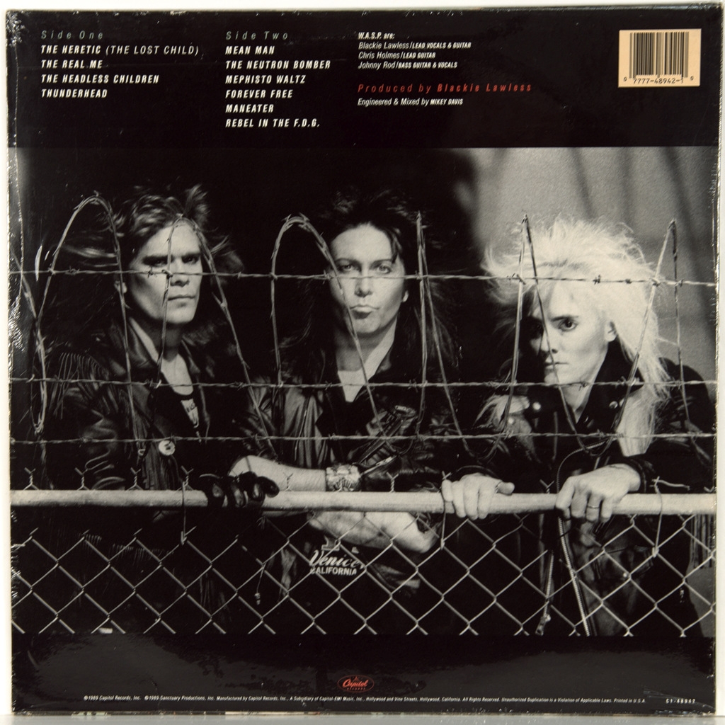 Редкий оригинал знамеритых американских хэви рокеров.Звучание настоящего альбома существенно отошло от шок-рока ранних работ W.A.S.P. в сторону более классического мелодичного хэви-метала[. Тексты песен стали более разнообразными. На обложке. На обложке этой пластинке на фоне гигантского черепа изображены политические деятели: Адольф Гитлер, Иосиф Сталин, Бенито Муссолини, Пол Пот, Иди Амин и Генрих Гиммлер; преступники Аль Капоне и Чарльз Мэнсон, а также члены организации Ку-клукс-клан в своём традиционном облачении. The Headless Children стал одним из наиболее коммерчески успешных альбомов W.A.S.P. и сохраняет этот статус по сей день. Стоит отметить что клавишником был приглашен HENSLEY, KEN (EX-URIAH HEEP), который внес свою лепту в создание альбома.