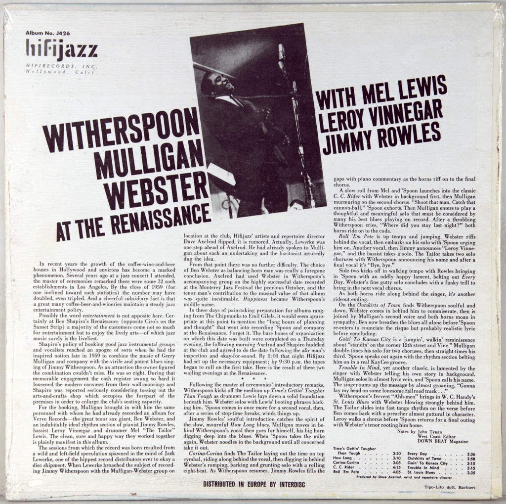 WITHERSPOON, JIMMY / MULLIGAN, GERRY / WEBSTER, BEN - AT THE RENAISSANCE