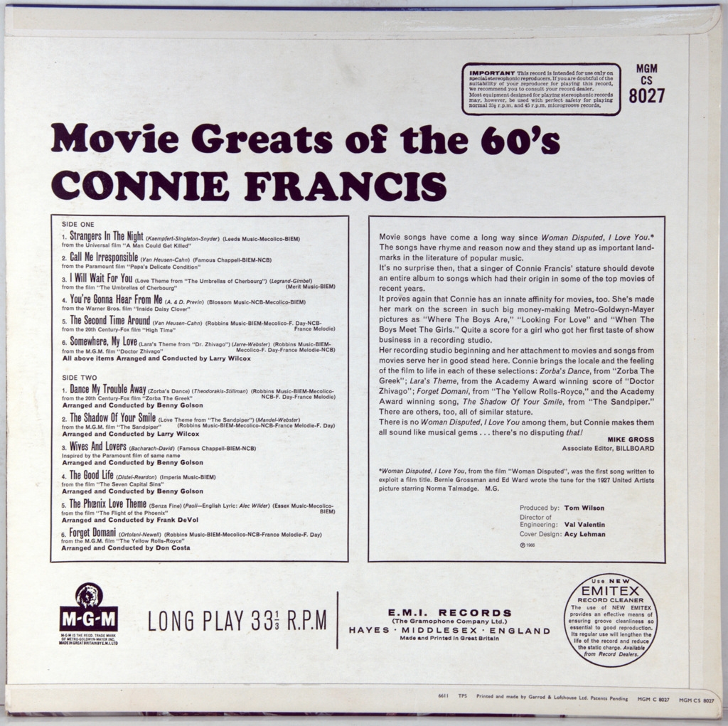 FRANCIS, CONNIE - MOVIE GREATS OF THE 60'S