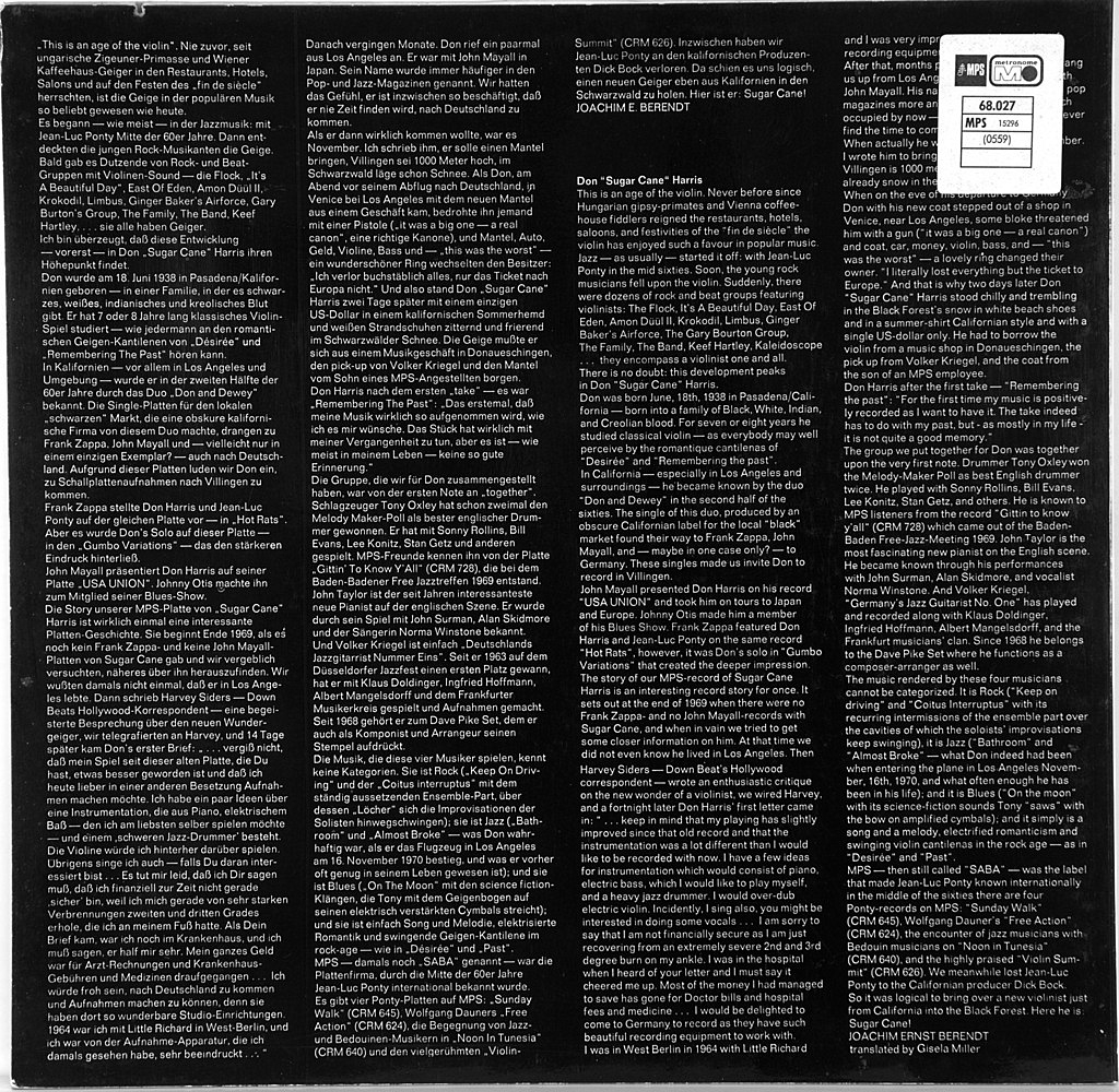 - Исполнитель: DON 'SUGAR CANE' HARRIS