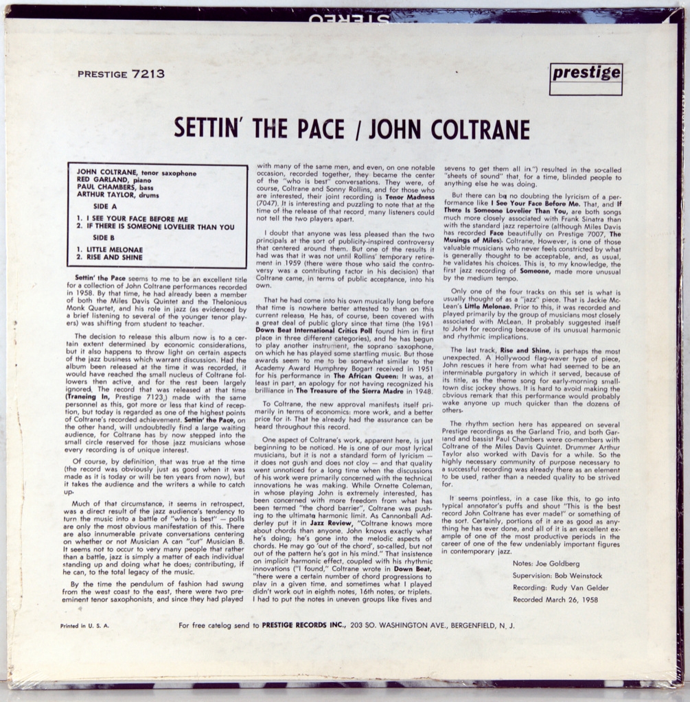 COLTRANE, JOHN - SETTIN' THE PACE