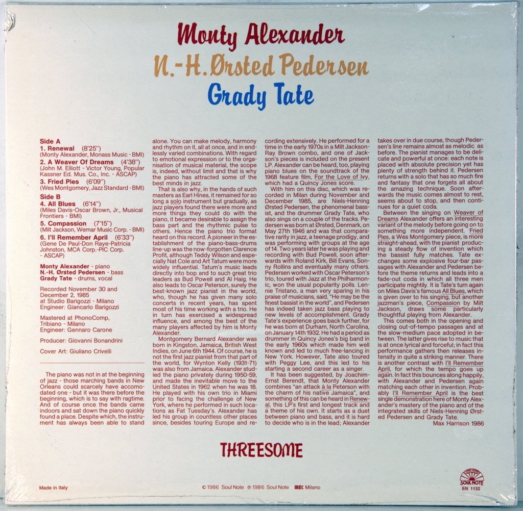 ALEXANDER, MONTY / N.-H. ORSTED PEDERSEN / TATE, GRADY - THREESOME
