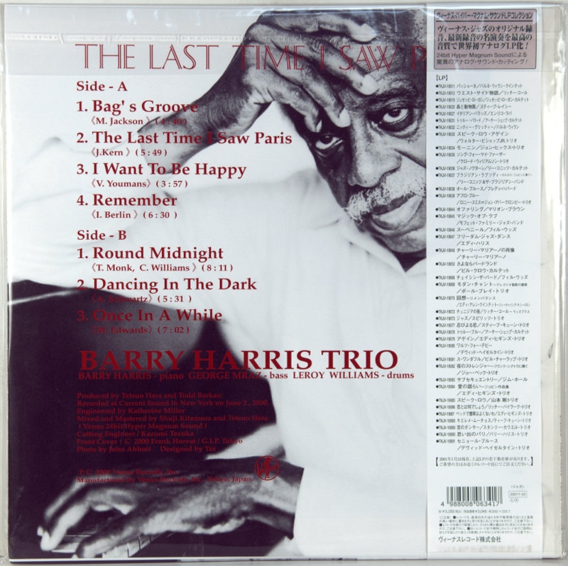BARRY HARRIS TRIO - LAST TIME I SAW PARIS