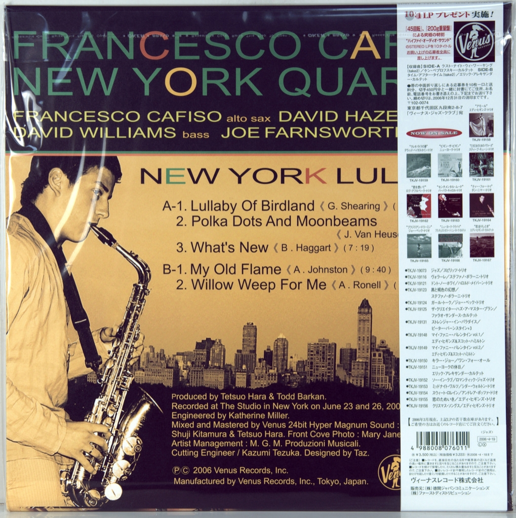 FRANCESCO CAFISO NEW YORKQUARTET - NEW YORK LULLABY